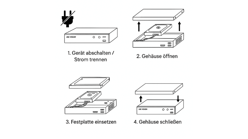 Diese Anleitung erklärt Schritt für Schritt, wie Sie eine Festplatte (HDD) in einen Hikvision