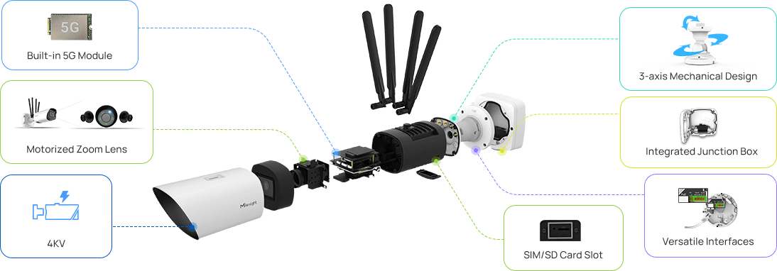 5G Milesight AI Motorisierte Pro Bullet Plus Netzwerkkamera der nächsten Generation mit 5G & KI