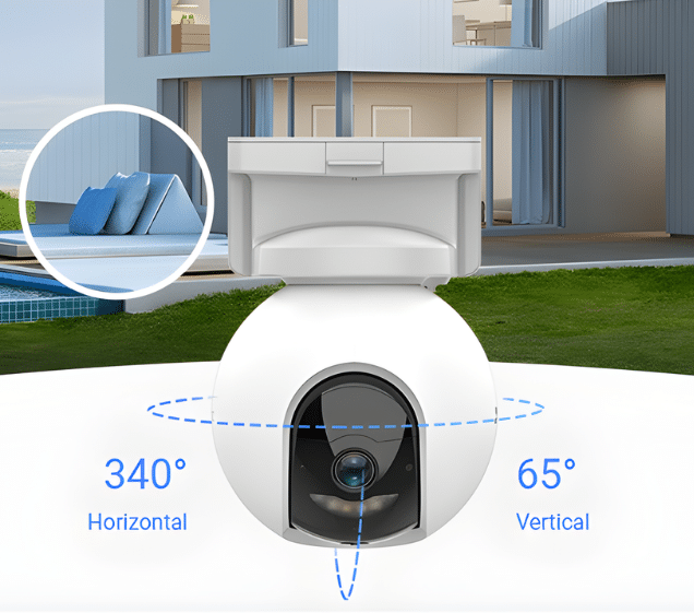 - Problem „Eingeschränktes Sichtfeld“: Die 360°-Panorama-Abdeckung lässt keine toten Winkel zu, denn die Kamera schwenkt und neigt sich vollautomatisch dorthin, wo etwas passiert.
