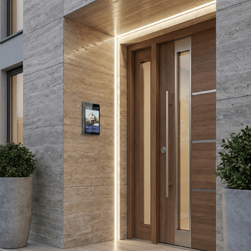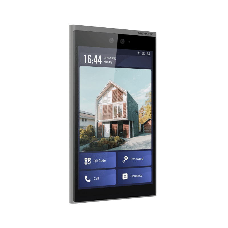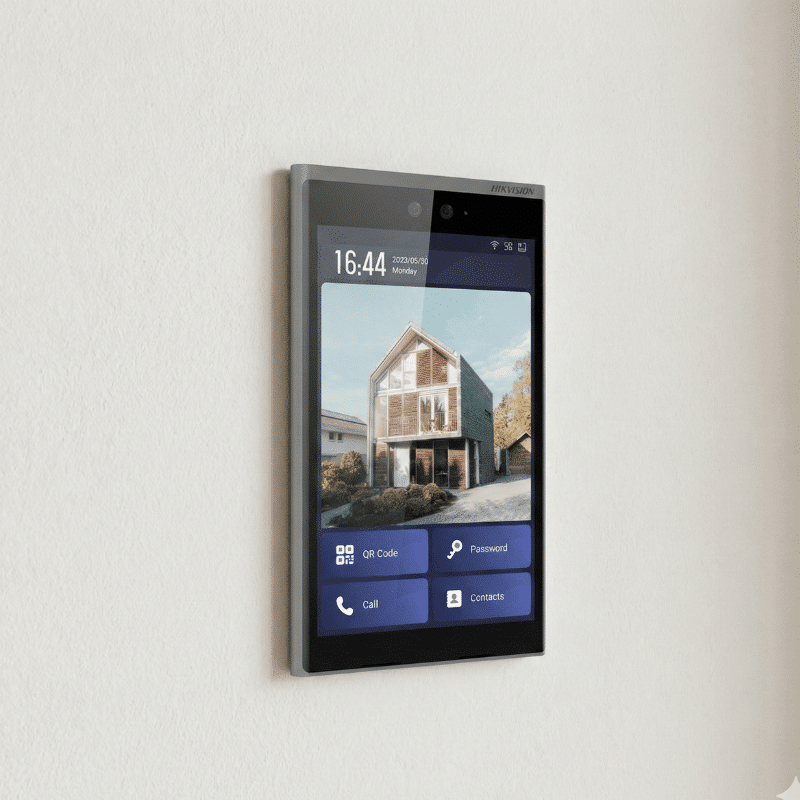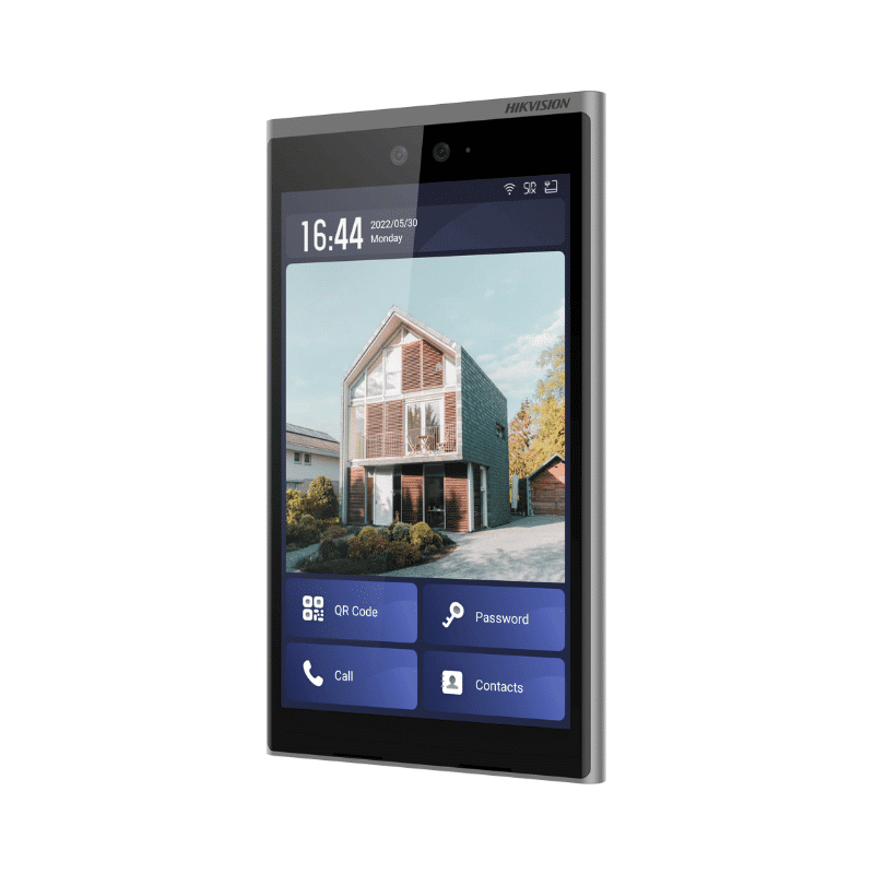Die DS-KD9633-WBE6 ist das Flaggschiff unter den Hikvision IP-Türstationen. Gefertigt aus eloxiertem Aluminium und ausgestattet mit einem brillanten 10,1-Zoll-Touchscreen, vereint sie luxuriöses Design mit modernster KI-Sicherheitstechnologie wie Gesichtserkennung und Fingerabdruck-Scan.