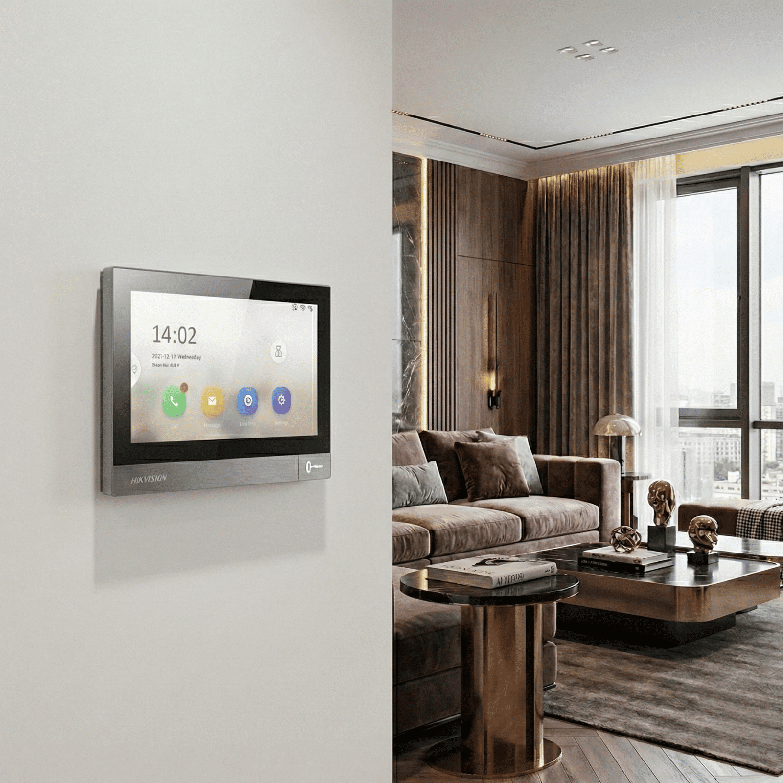 Ja, Hikvision IP-Kameras können auf dem Innenmonitor eingebunden werden, sodass Sie zentral Zugriff auf alle Kameras haben.