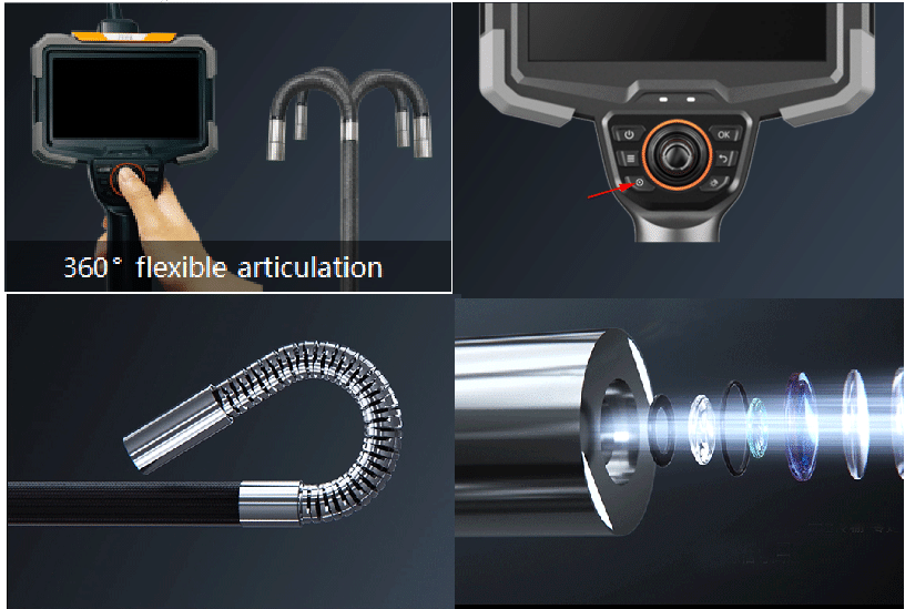 - 360° All-Way Artikulation: Omnidirektionale Steuerung der Kameraspitze.