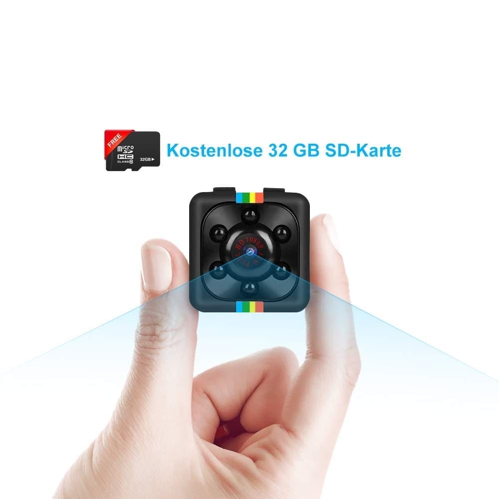 Mini Kamera, Full HD mit Nachtsicht, Bewegungserkennung, eingebaute 200 mAh Lithium-Batterie + 32GB SD-Karte
