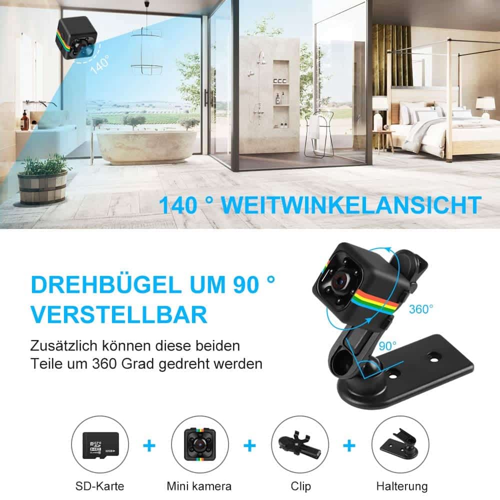 140 Grad Weitwinkel, grössere Sichtweite, kann mehr Szenen als andere Mini Kamera in einer kleineren Umgebung erfassen.