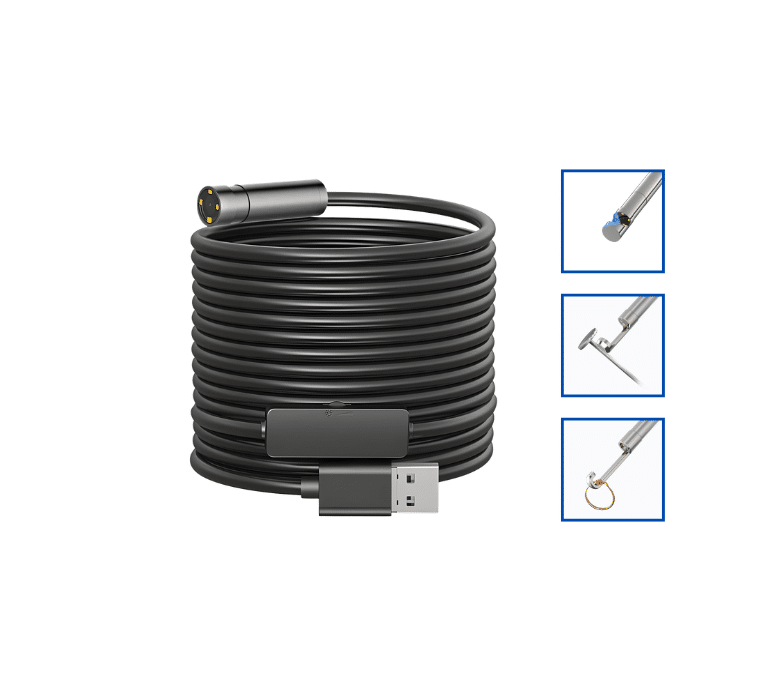 Ausgestattet mit 6 hellen LEDs, einem 5 Meter langen Flex-Kabel und einer IP67 wasserdichten Sonde, ist sie die perfekte Rohrkamera und das ideale KFZ-Endoskop für Profis und Heimwerker. Einfach per USB an Android, PC oder Mac anschließen und sofort mit der Inspektion starten (Plug & Play).