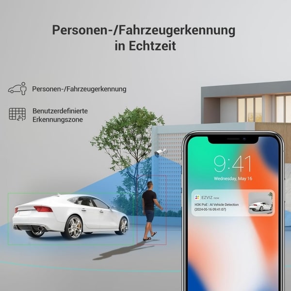 | Intelligenter Alarm | KI-gestützte Erkennung menschlicher Formen KI-gestützte Fahrzeugformerkennung |
