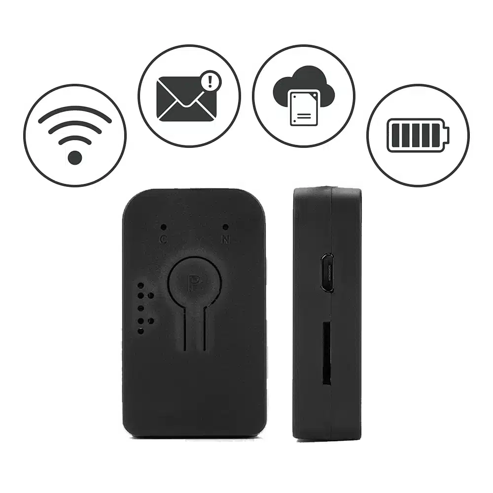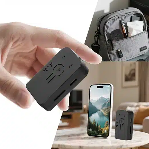 Mit Abmessungen von nur 105 × 60 × 20 mm ist der Recorder äußerst tragbar und lässt sich unauffällig in verschiedenen Umgebungen einsetzen. -